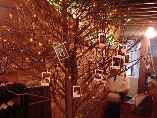 폴라로이드 사진들이 나무에