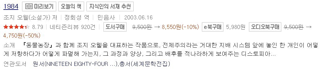 조지 오웰에 대한 깊이 있는 내용은 앞의 리뷰글인 < 동물농장 >에서 다루었기에 본 글에서는 위의 내용만 말씀 드립니다.