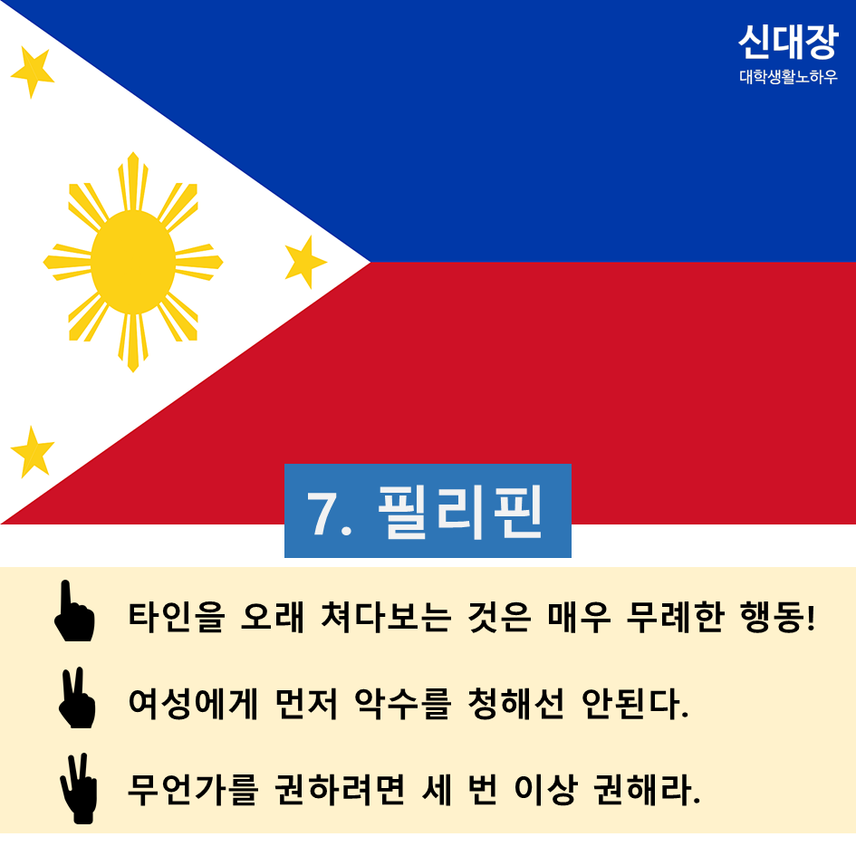 간단한 국가별 에티켓입니다.